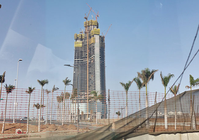 A torre da cidade árabe de Jeddah começou a ser construída em 2013, mas teve suas obras interrompidas em 2018, em virtude de um escândalo de corrupção e por conflitos trabalhistas. Desde o início, a ideia era superar o edifício mais alto do mundo dos Emirados Árabes. Matematicamente, a tarefa é erguer uma construção com um quilômetro de altura e 167 andares e deixar para trás o prédio que detém o atual recorde, concluído em 2010, com seus 828 metros e 163 andares. Além dessa diferença de cerca de 170 metros, o projeto promete uma superação também no campo tecnológico, arquitetônico e de engenharia. A começar pelo formato projetado pelo escritório Adrian Smith + Gordon Gill, o mesmo responsável pelo Burj Khalifa, que neste caso se inspirou na vegetação do deserto para conceber o prédio no formato de folhas que se dobram, lembrando também uma flecha apontada para o céu. O objetivo é suportar condições extremas de vento e temperatura, no que a inclinação da fachada também contribui.