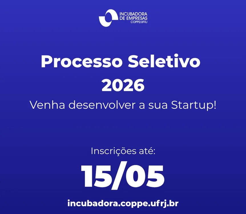 A Incubadora da Coppe/UFRJ anunciou a abertura das inscrições para o seu processo seletivo de 2026. O programa é voltado para projetos de base tecnológica e ideias inovadoras que possuam potencial de mercado e visão empreendedora.