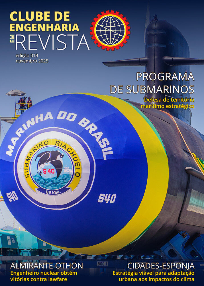 A 19ª edição de Clube de Engenharia em Revista traz em sua matéria de capa o estratégico programa de construção de submarinos da Marinha do Brasil, que tem conquistado vitórias, mas também enfrenta desafios na principal missão, que é sua unidade com propulsão nuclear. Também contamos a trajetória vitoriosa do engenheiro e almirante Othon Luiz Pinheiro da Silva, considerado o pai do Programa Nuclear Brasileiro, que vem superando injustiças em sua vida pública. A publicação oficial do Clube de Engenharia do Brasil também aborda em seus artigos e reportagens assuntos variados de interesse da Nação e do mundo, como a nova estratégia de cidades-esponja, a crise da Refinaria de Manguinhos, o sucesso do futebol feminino praticado na Sede Campestre da entidade, entre outros temas. A todos, uma excelente leitura!